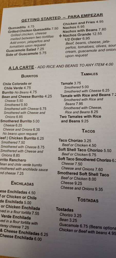 oz steak smothered in chile onion sauce, fries, rice, beans and served with two tortillas